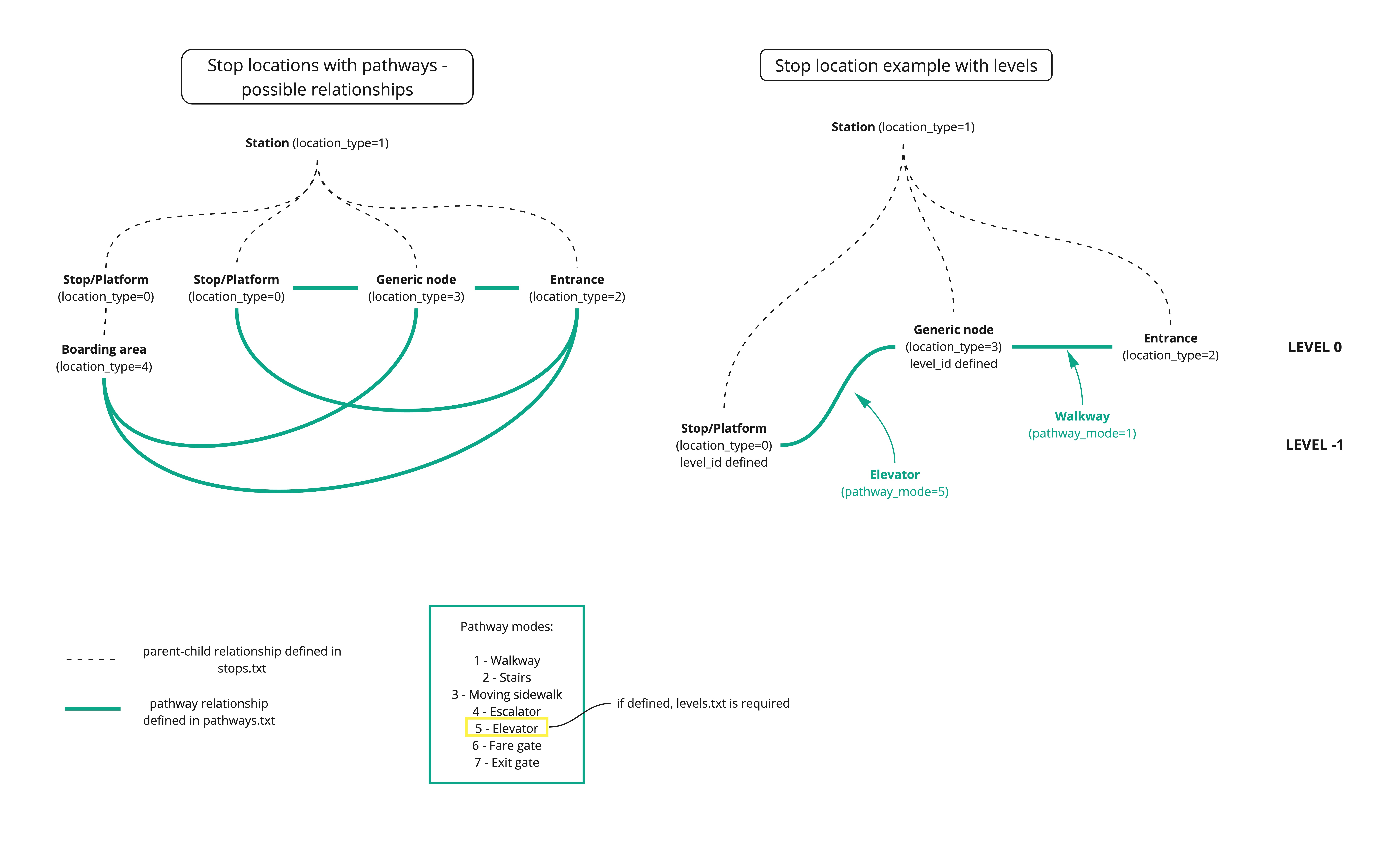 GTFS-Pathways は、GTFS の構成要素の1つで、交通駅の詳細を表現します。これにより、乗客は交通駅で必要な乗り換えが可能かどうかを理解することができます。